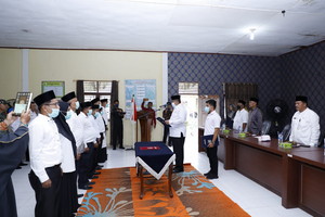 Pelantikan dan pengambilan sumpah jabatan tersebut, dilaksanakan di Gedung Serbaguna Kampung Sri Gemilang, Kecamatan Koto Gasib, Rabu pagi (15/6/2022).