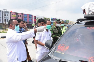 Pengecekan suhu tubuh seluruh warga yang masuk ke Kampar tersebut dilaksanakan di perbatasan Kampar dengan Pekanbaru, tepatnya di SPBU Rimbo Panjang Kecamatan Tambang.