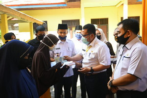 Pada kesempatan tersebut, Bupati menyempatkan diri untuk mengunjungi rumah penerima bantuan sekaligus menyerahkan bantuan secara langsung.( ADV/ Dirman)