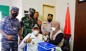 Dalam kesempatan itu juga Bupati bersama forkompinda melakukan vaksin booster, sebagai contoh kepada masyarakat.