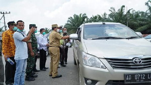 ” kita juga sudah membuat beberapa Posko baik dari perbatasan Sumut maupun dari Kampar dan Pekanbaru, dimana setiap Mobil maupun kendaraan yang masuk ke Rokan Hulu akan diperiksa, seperti sebuah Bus yang lewat, kita tetap membagikan Masker “jelas Sukiman.