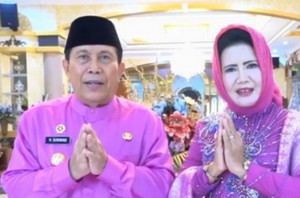 “Selamat hari raya Idulfitri 1441 Hijriah, mohon maaf lahir dan batin,” ucap Bupati H Sukiman di dampingi Ibu Peni Herawati.