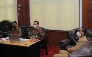 Bupati Rokan Hulu H.Sukiman dan wakil Bupati Rokan Hulu bersamaan mengikuti Pembukaan Pembekalan ini di ruang kerjanya masing-masing,