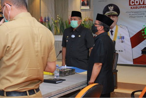 SIAK, detikinews.com — Bupati Siak Alfedri mengikuti Rapat Paripurna tentang Penyampaian Laporan Keterangan Pertanggungjawaban (LKPj) Kepala Daerah Tahun 2020 secara Virtual. Kegiatan tersebut berlangsung di Ruang Bandar Siak,Kantor Bupati Siak, Senin(12/04/21).