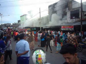 Di TKPTerlihat kerumunan massa, yang menyaksikan proses pemadam yang dilakukan petugas, setelah berjibaku sekitar 60  menit asap di ruko tersebut masih terlihat  mengepul, upaya  terus dilakukan petugas untuk menaklukkannya.(Wira)