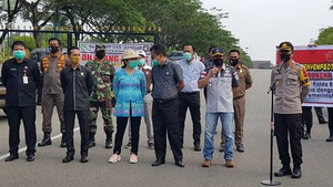 - Bupati Rohul dan Kapolres sebelum melepas tim gugus tugas COVID-19 Pemkab untuk melakukan penyemprotan disinfektan di wilayah Pasir Pengaraian;