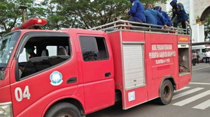 - Mobil operasional pemadam kebakaran milik Satpol PP dan Damkar Rohul melakukan penyemprotan disinfektan di wilayah ibu kota Pasir Pengaraian;