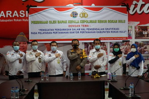 Dalam kunjungan tersebut beliau juga menyampaikan bahwa kegiatan ini sebagai bentuk Polres Rokan Hulu dalam bersinergi dengan Kantor Pertanahan dalam upaya pencegahan gratifikasi tergadap pelayanan pertanahan di Kantor Pertanahan Kabupaten Rohul.