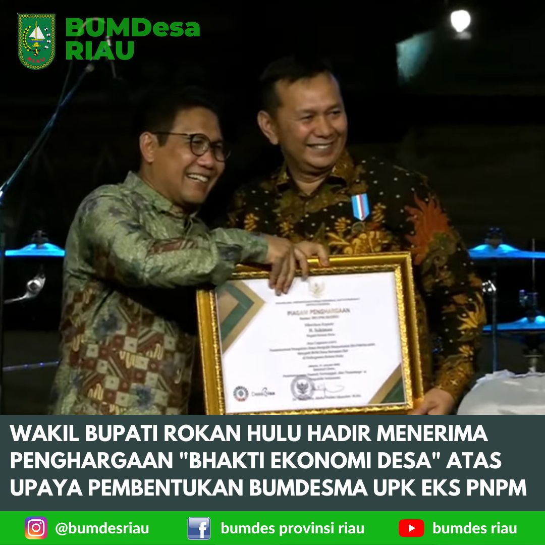Atas upaya tersebut, Pemerintah Kabupaten Rokan Hulu mendapatkan penghargaan dari Kementerian Desa yang diserahkan pada Hari BUMDes Nasional yang berlangsung di Kabupaten Bintan Provinsi Kepulauan Riau, Kamis, (2/2/2023) malam.