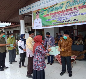 Penyerahan sertifikat tersebut dilakukan H Sukiman orang Nomor 1 di Rohul ini kerjasama dengan pihak Kantor Agraria Tata Ruang-Badan Pertanahan Nasional (ATR-BPN) Rohul dalam program Pendaftaran Tanah Sistematis Lengkap (PTSL) diberikan kepada warga Kelurahan Kota Lama secara gratis.