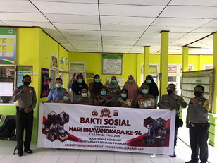TEBINGTINGGI BARAT, Detikinews.com – Dalam rangka memperingati HUT Bhayangkara ke-74, Polsek Tebingtinggi Barat, Resor Kepulauan Meranti, melaksanakan kegiatan bakti sosial (baksos) dengan memberikan bingkisan ke tenaga medis di UPT Puskesmas Alai dan UPT Puskesmas Pulau Merbau. Selasa (16/6/2020).