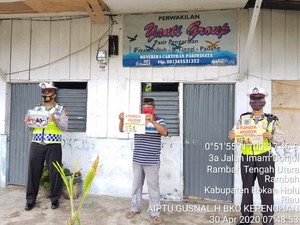 ROKAN HULU, detikinews.com — Kapolres Rokan Hulu (Rohul) AKBP Dasmin Ginting, SIK melalui Personil Satuan Polisi Lalu Lintas (Satlantas) yang dipimpin AKP Andriyanto  SKG SIK, melakukan  giat Ops Ketupat Lancang  Kuning 2020, sekaligus dalam mencegah penyebaran Corana Virus Deases 2019 (Covid-19).