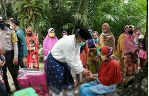 Tampak hadir Plt Kadis Sosial Siak Rubiati, Kepala BPBD Syafrizal, Camat Mempura Desy Fefianti, dan Penghulu Teluk Merempan.(inf)
