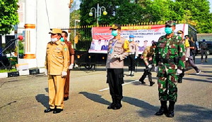 Bupati Rohul H Sukiman, Kapolres Rohul AKBP Dasmin Ginting, Kajari Rohul Ivan Damanik SHMH Ketua DPRD Rohul Novliwanda Ade Putra beserta personil TNI-Polri, Damkar, Satpol PP Rohul dan GP Ansor hadir dalam pelaksanaan kegatan tersebut.