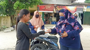 Setelah penyampaian edukasi, tim Kukerta membagikan masker kepada masyarakat sekitar, terutama yang tidak memakai masker.