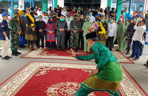 Kedatangan Danrem 031/WB Mayjend TNI M. Syech Ismet SE M.han yang merupakan anak Jati Riau didampingi Kasi Intel Kolonel Inf. Budi Agus, Kasiren Kol Kav. Tri Handoko dan Dandim 0303 Bengkalis Letkol. Inf. Lizardo Gumay di Pelabuhan Tanjung Harapan Selatpanjang, langsung disambut oleh Bupati Irwan dan Istri serta Forkopimda yang ditandai dengan pemasangan Tanjak oleh Ketua Majelis Kerapatan Adat LAM Meranti H. Ridwan Hasan didampingi Katua LAM Meranti H. Muzamil, yang dilanjutkan dengan penampilan seni pencak silat.
