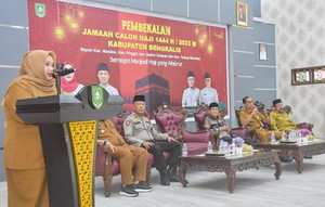 “Pembekalan bagi JCH ini sengaja kami lakukan, sebagai salah satu bentuk komitmen, keseriusan serta kepedulian kami Pemerintah Daerah dalam mempersiapkan jamaah calon haji, agar bapak dan ibu para JCH, benar-benar memiliki pengetahuan, informasi serta gambaran tentang bagaimana dan apa yang akan dilakukan, baik ditanah air maupun ditanah suci nantinya,” ujar Bupati Kasmarni.