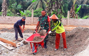 “Keterlibatan TNI kiranya dapat menambah semangat dalam melaksanakan gotong royong pembangunan mushola ini”, ujar Serka BK. Tumanggor, Sabtu (15/02).